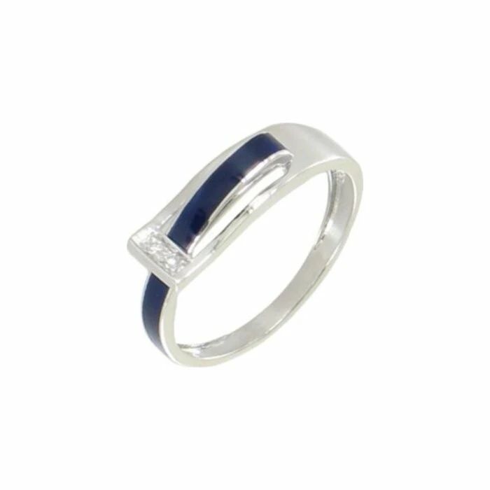 Bague Clozeau En Or Blanc, Résine Bleu Et Diamants