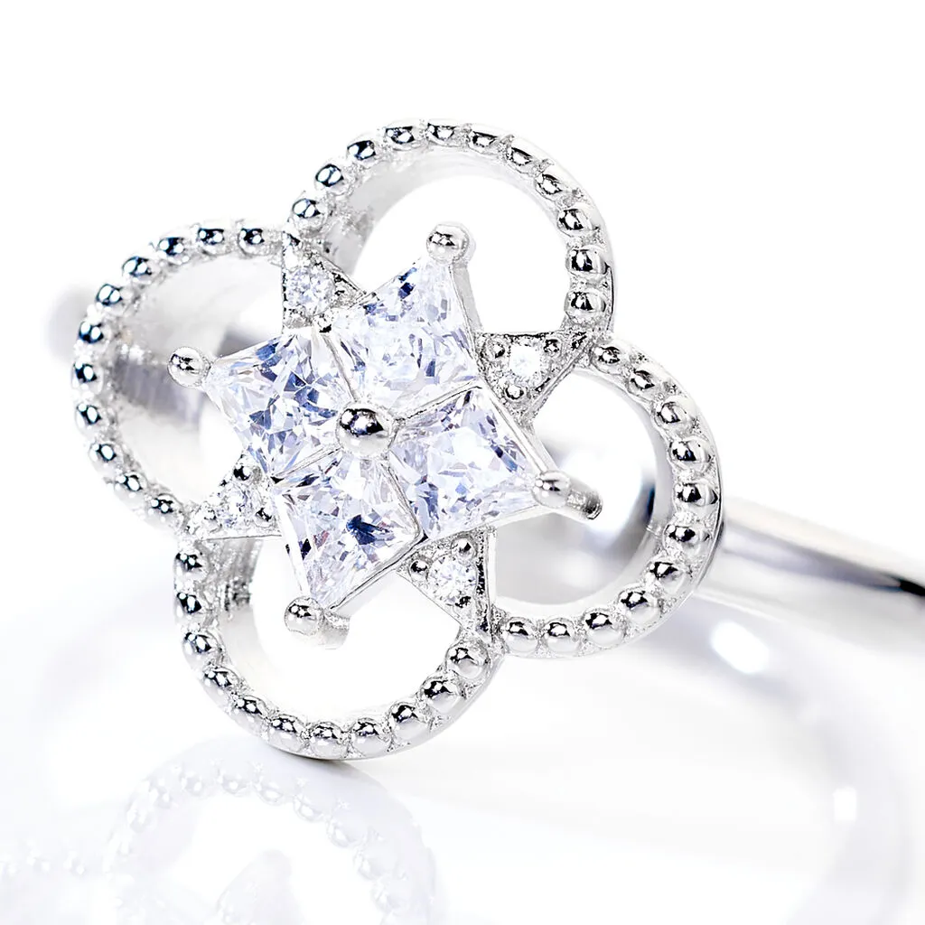 Bague Laetizia Fleur Argent Blanc Oxyde De Zirconium