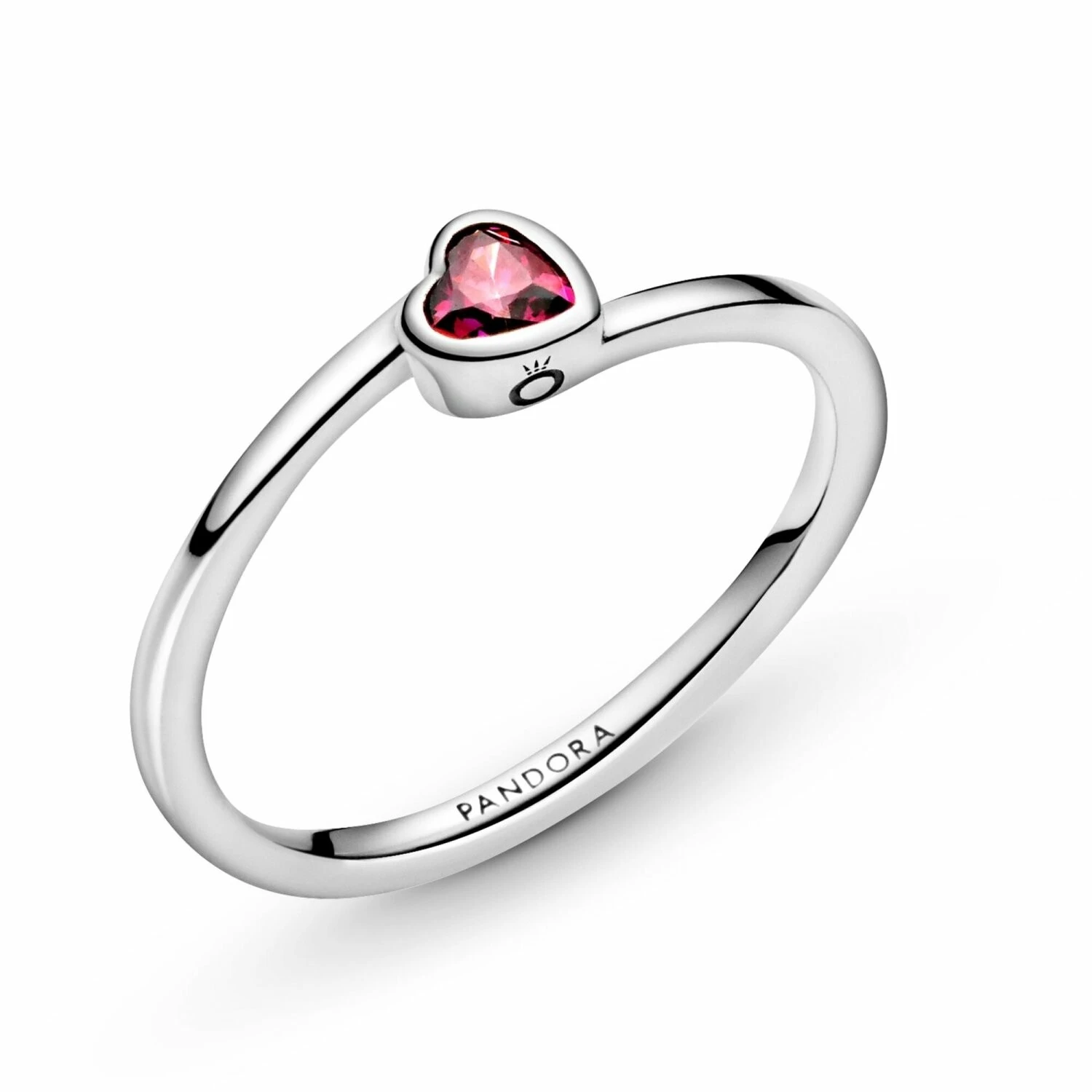 Bague Pandora People Solitaire Cœur Incliné Rouge En Argent Et Oxyde De Zirconium, Taille 52