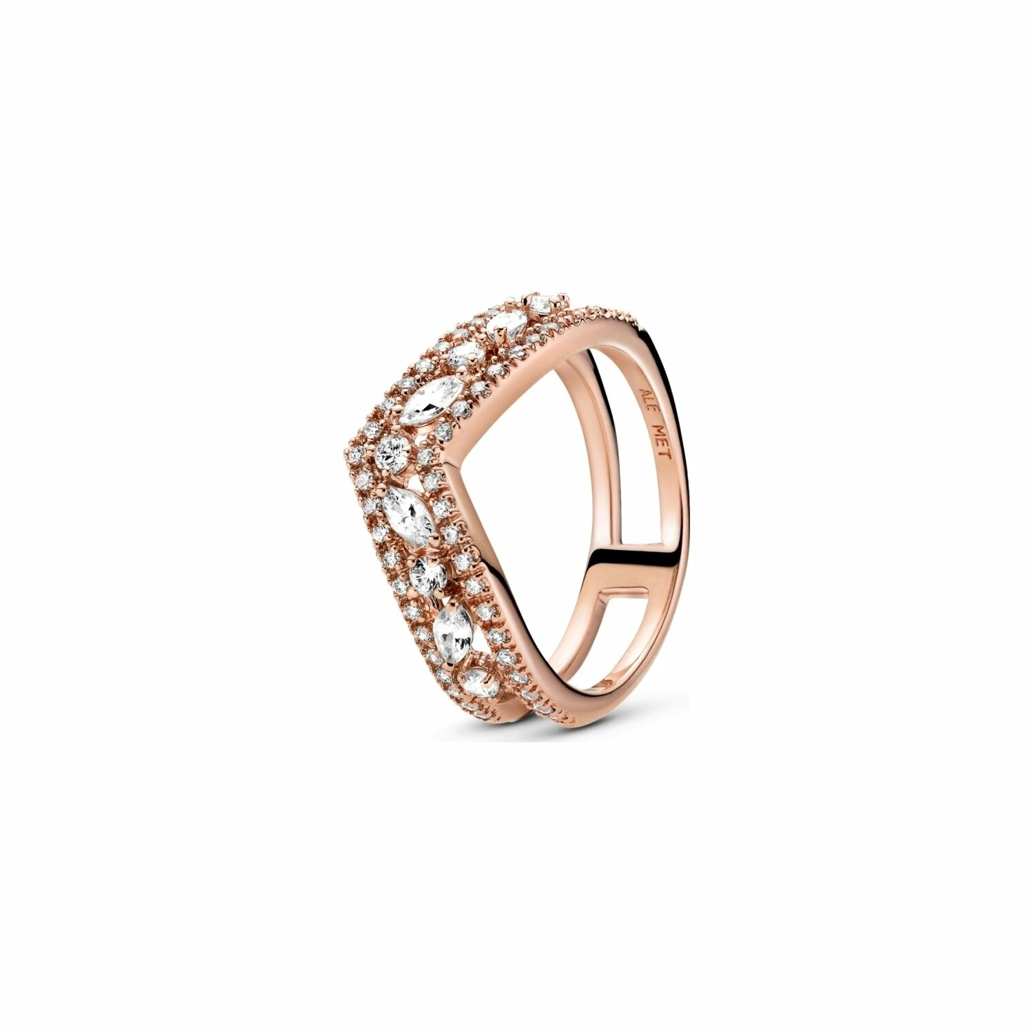 Bague Pandora Wish Chevron Double Marquise Scintillante En Métal Doré Rose Et Oxyde De Zirconium, Taille 54