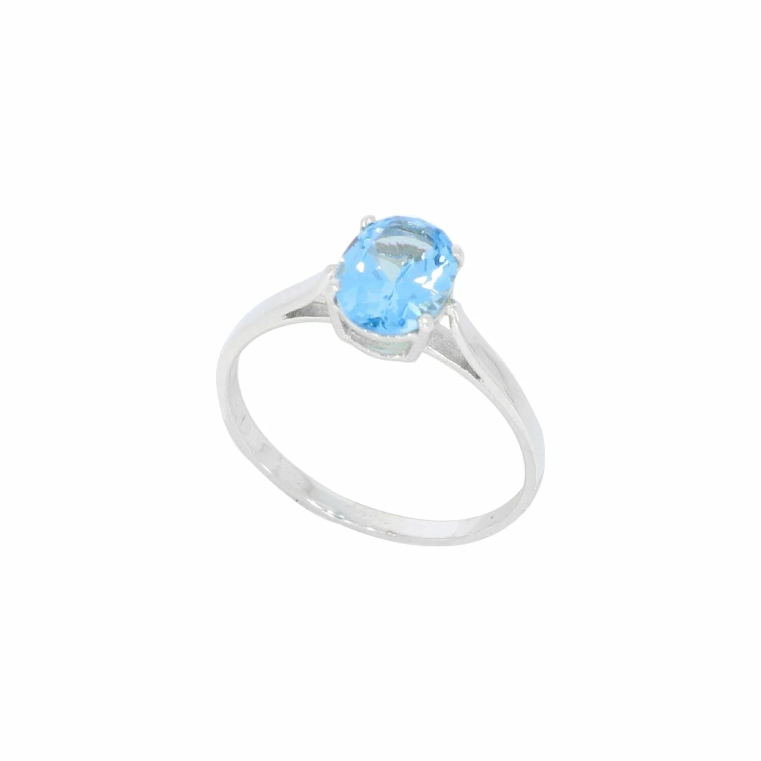 Bellon Bague 4 Griffes En Or Blanc Et Aigue Marine