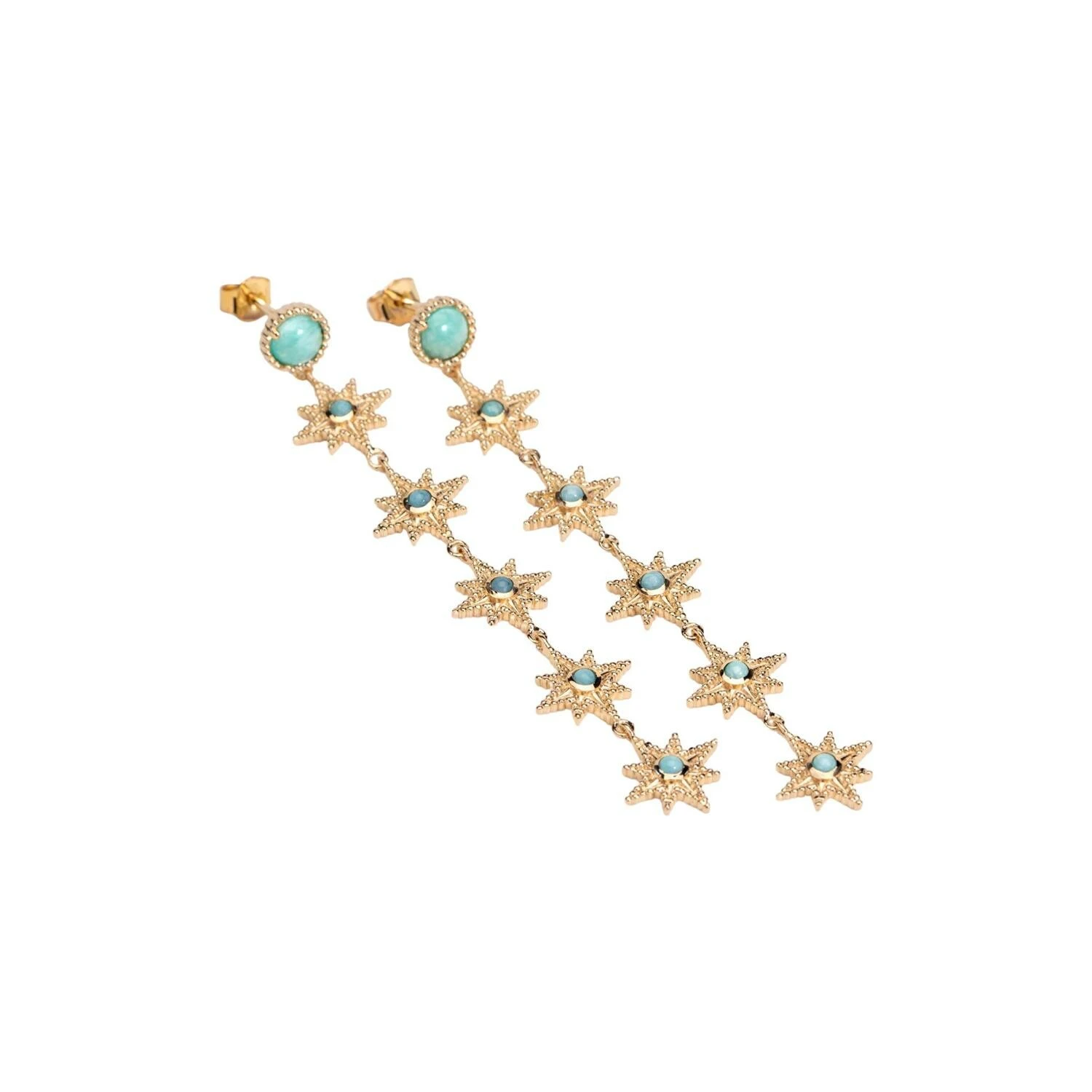 Boucles D’oreilles Ana & Cha Stella En Plaqué Or Jaune Et Amazonite