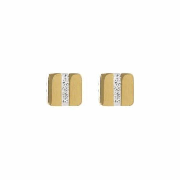 Boucles D’oreilles Coeur De Lion En Cristaux En Pavé Et Métal Doré Jaune