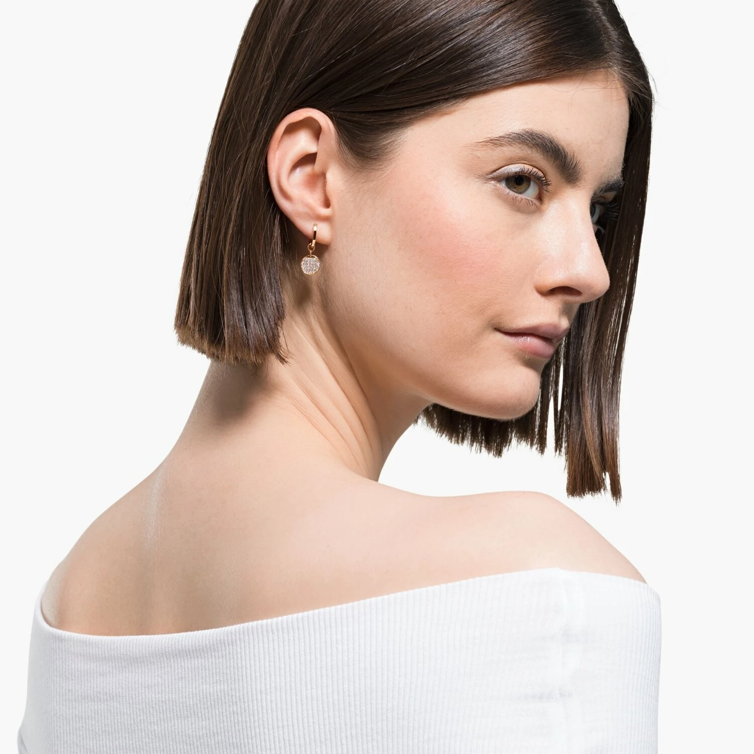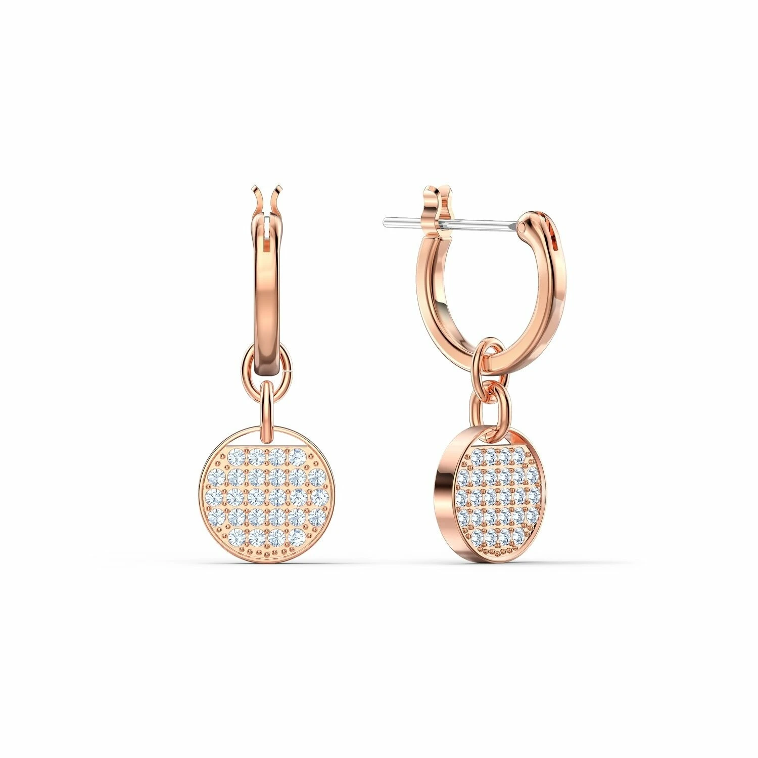 Boucles D’oreilles Créoles Swarovski Ginger Mini En Métal Doré Rose Et Cristaux Swarovski Blancs