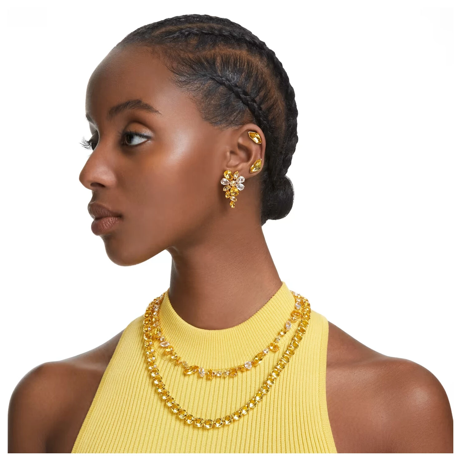 Boucles D’oreilles Swarovski Gema En Métal Doré Et Cristaux Swarovski