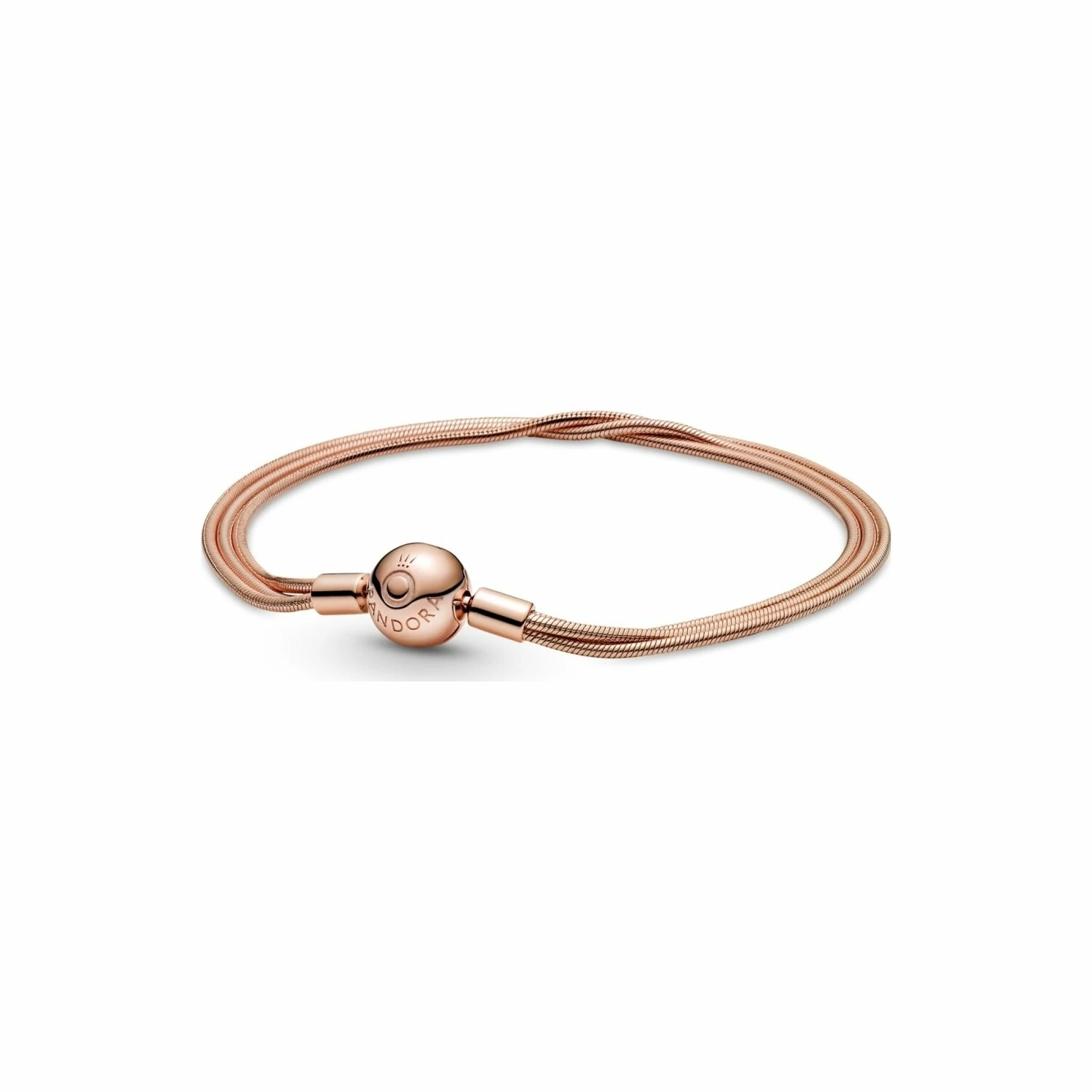 Bracelet Pandora Icons Maille Serpent Multi-rangs Moments En Métal Doré Rose, 19 Cm