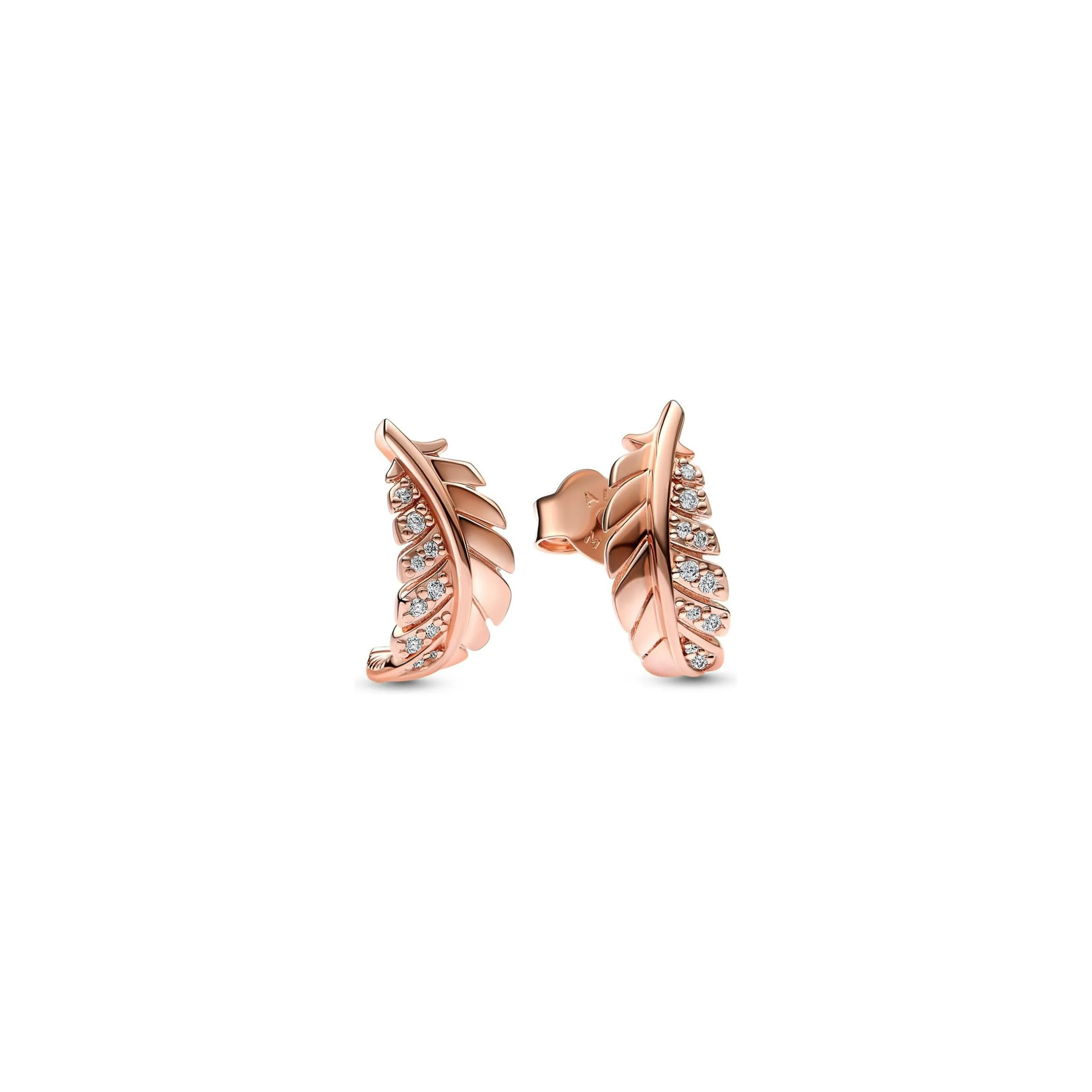 Clous D’oreilles Pandora Moments Plume Courbe Flottante En Métal Doré Rose