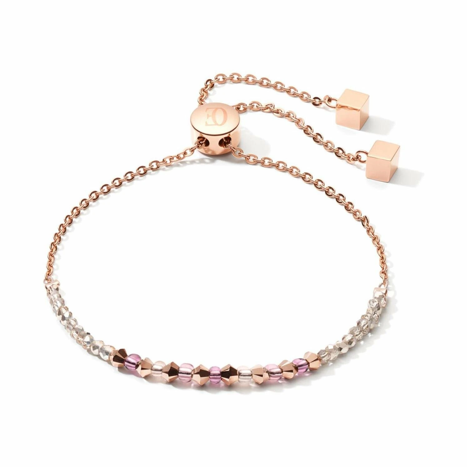 Coeur De Lion Bracelet Cœur De Lion En Métal Doré Rose, Cristaux Et Perles Rocailles En Verre