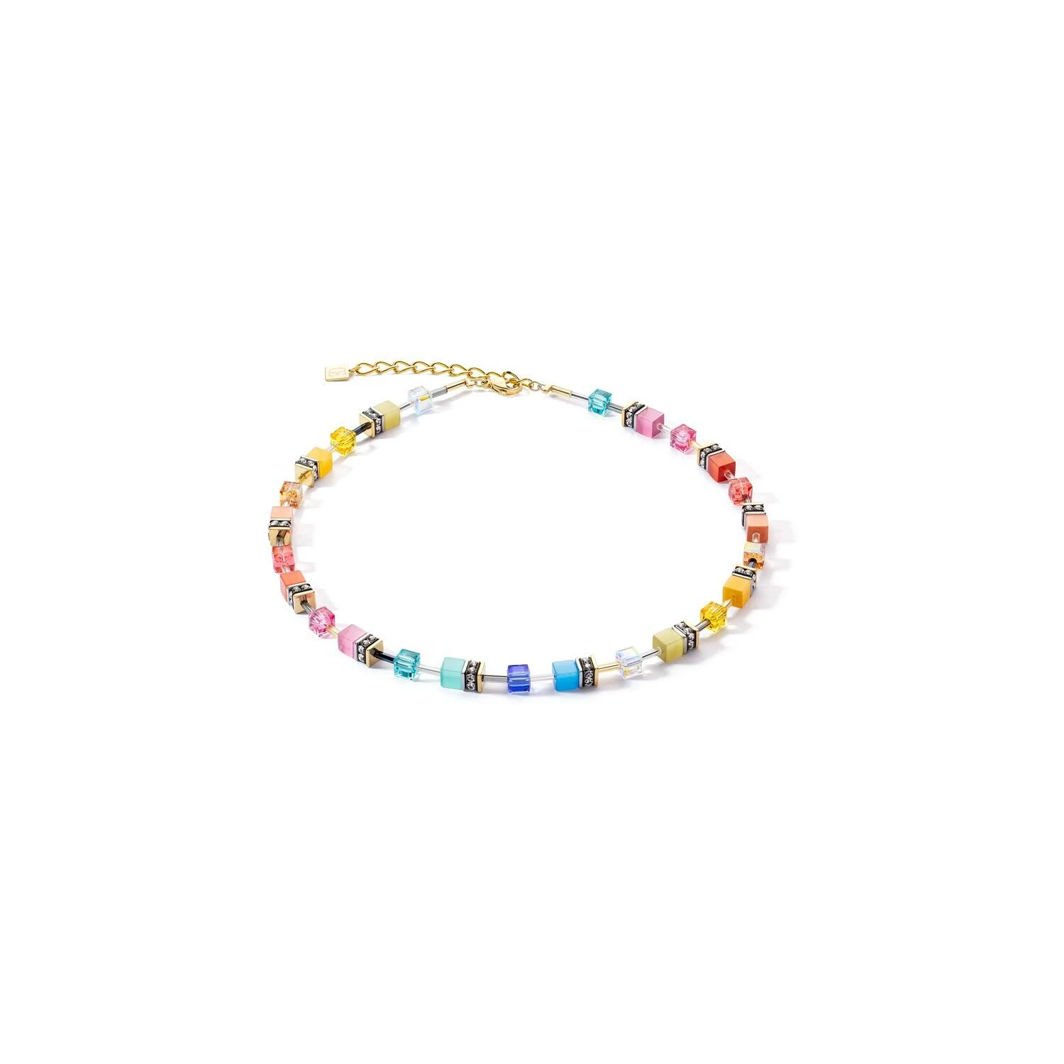 Coeur De Lion Collier Cœur De Lion GeoCUBE En Métal Doré, Acier, œil De Tigre, Cristaux Et Strass