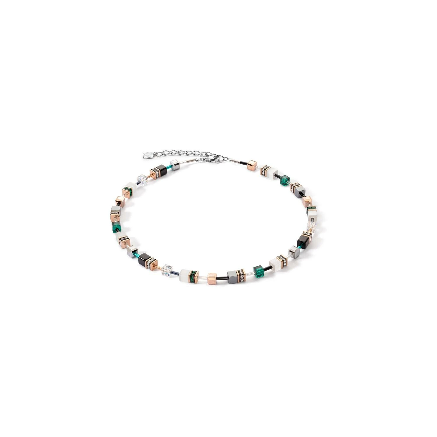 Coeur De Lion Collier Cœur De Lion GeoCUBE En Métal Doré Rose, œil De Tigre, Hématite, Cristaux, Strass Et Verre