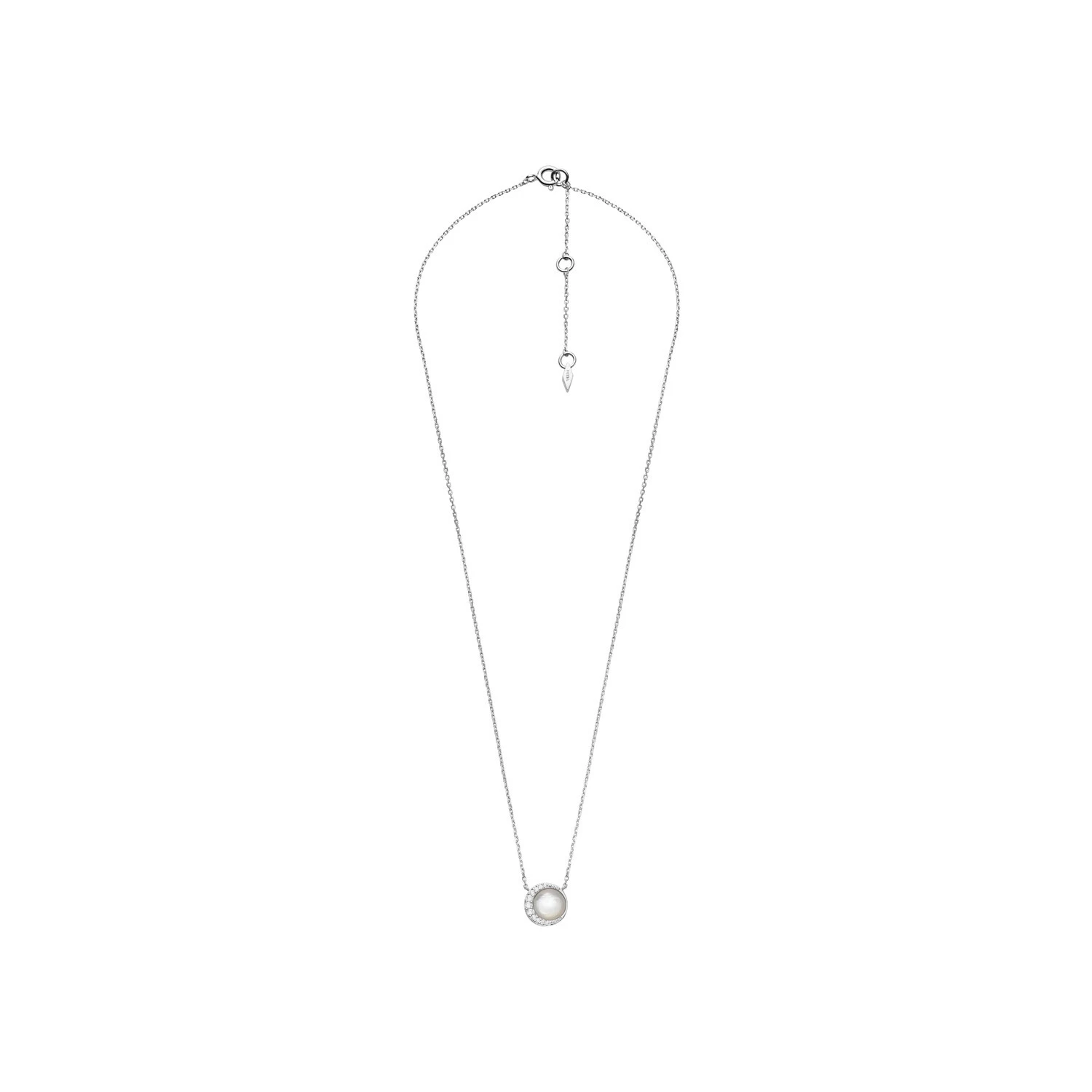 Collier Fossil Crescent En Argent, Nacre Et Verre