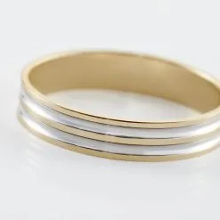 Alliance Or Bicolore Blanc Et Jaune 375/1000 Fantaisie Lisse Double Liseret 4mm