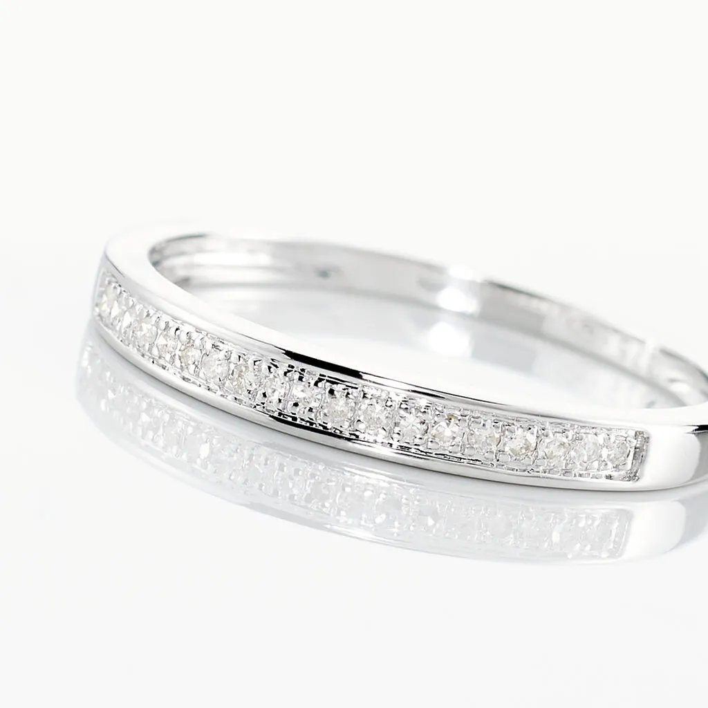 Demi Alliance Or Blanc 375/1000 Anneau Avec Pavage Simple Diamants 0.08cts