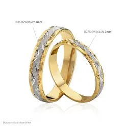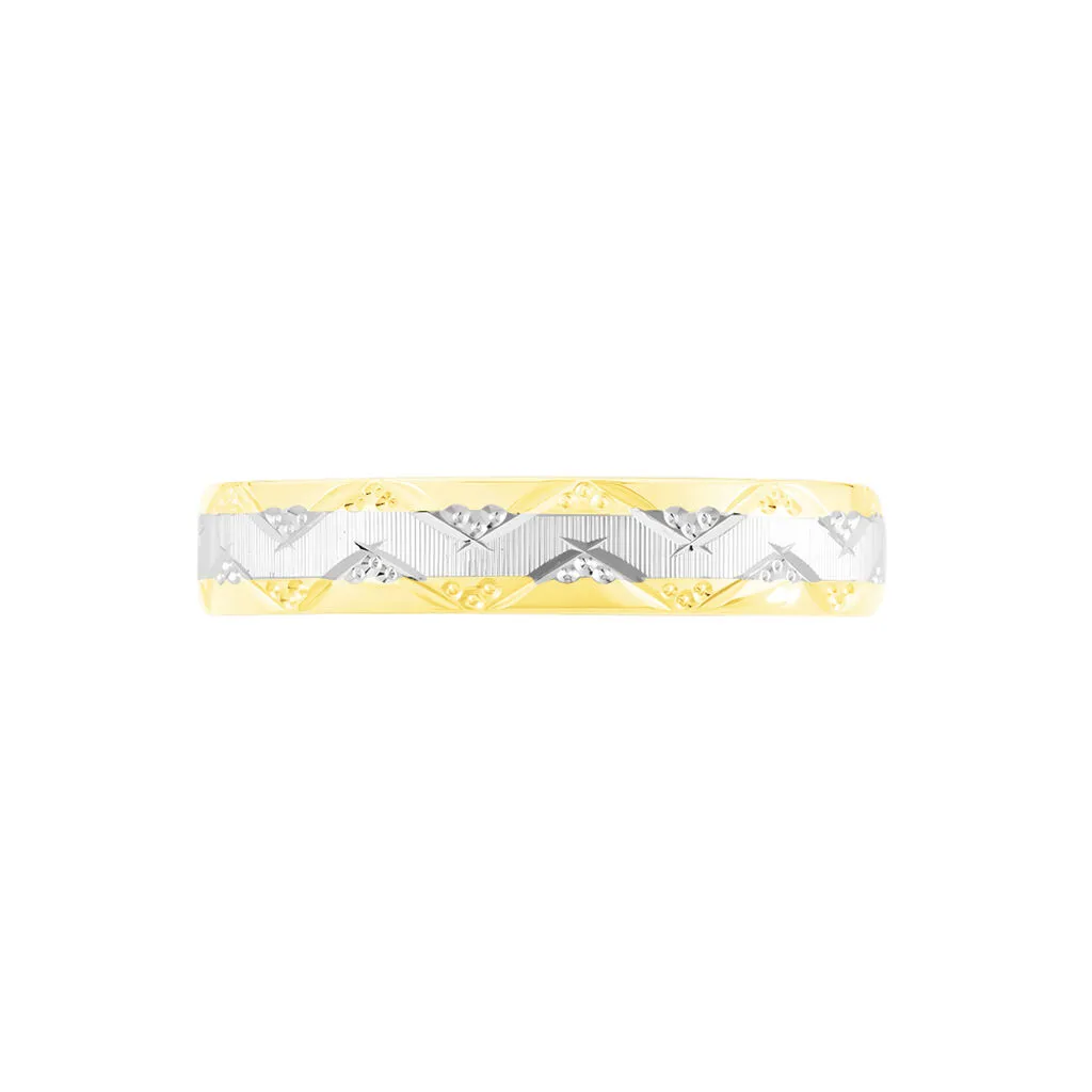 Alliance Or Bicolore Jaune Et Blanc Rhodie 375/1000 Fantaisie Motif Zigzag 4mm