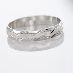 Alliance Or Blanc 375/1000 Fantaisie Motifs Vagues Largeur 4mm