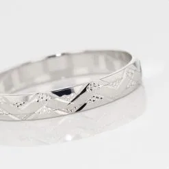 Alliance Or Blanc 375/1000 Fantaisie Motifs Vagues Largeur 3mm