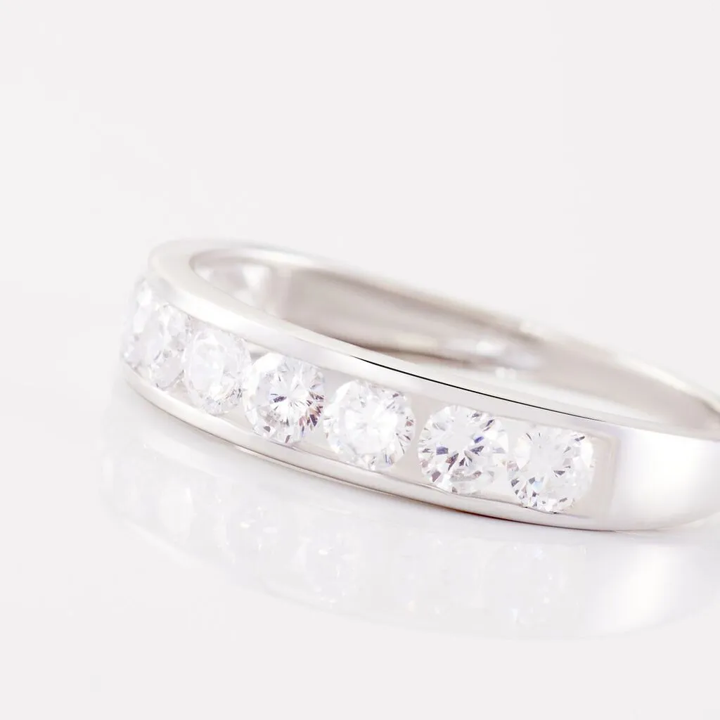 Demi-alliance Or Blanc 375/1000 Oxydes De Zirconium Ronds Serti Rail 3mm