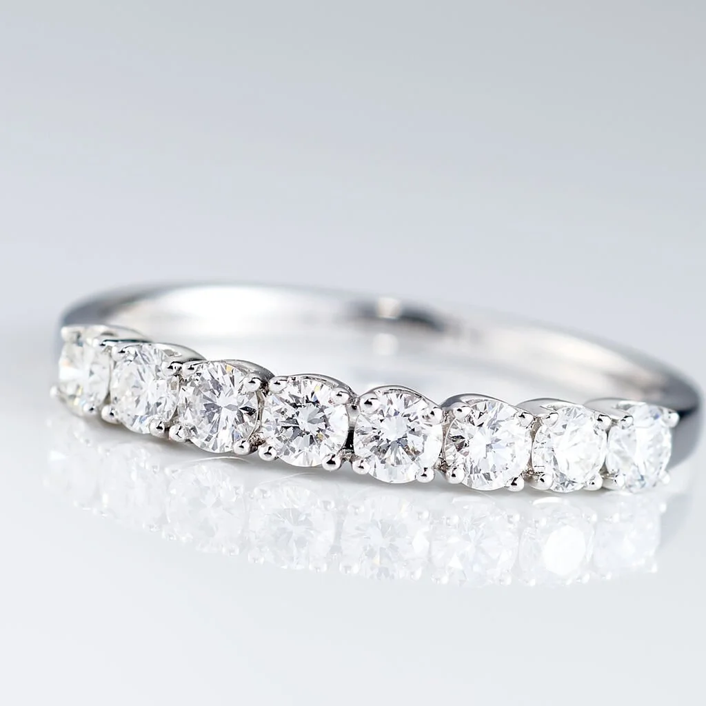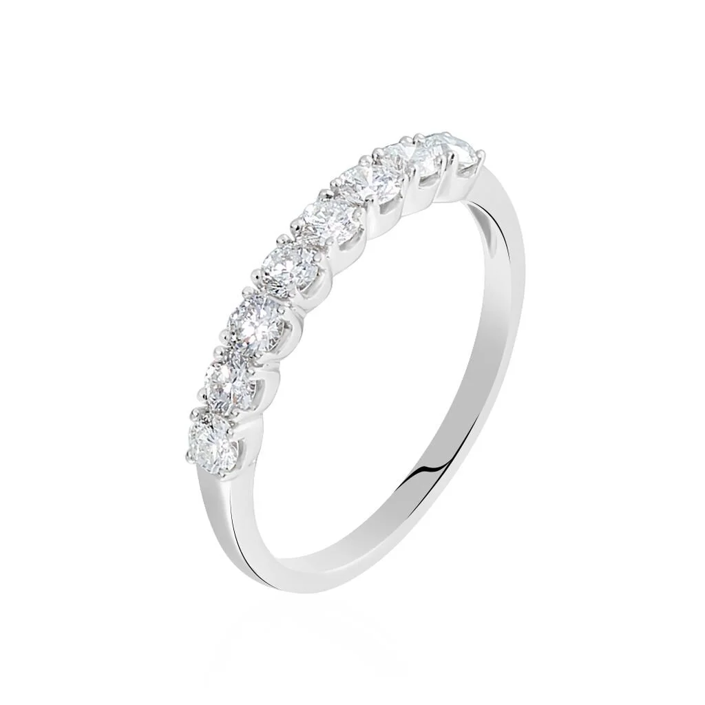 Demi-alliance Or Blanc 750/1000 Diamants Synthétique 0.60cts Sertis Griffes