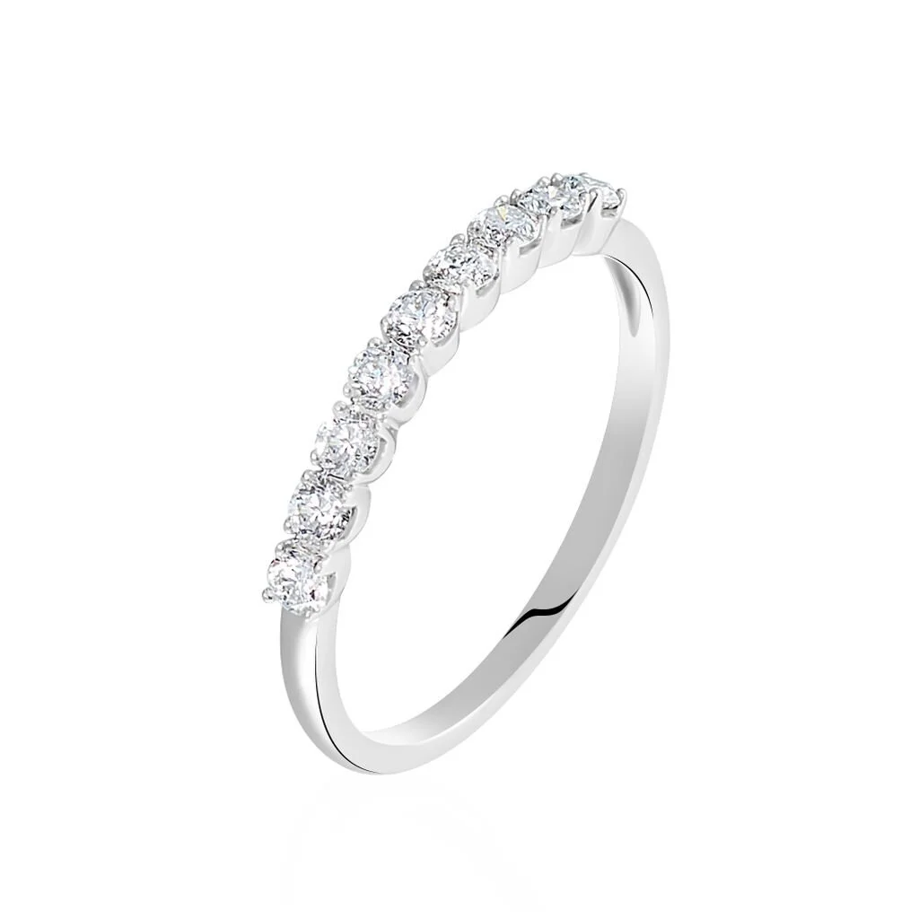 Demi-alliance Or Blanc 750/1000 Diamants Synthétique 0.40cts Sertis Griffes