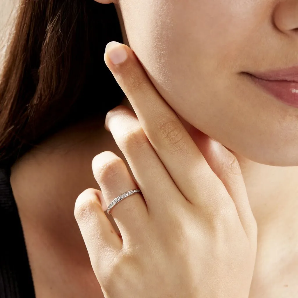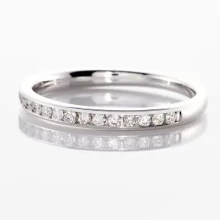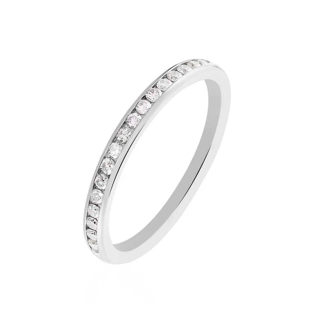 Alliance Or Blanc 375/1000 Demi Tour Diamants Sertis Rail 0.24cts