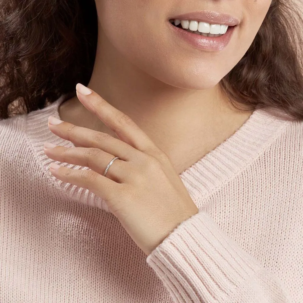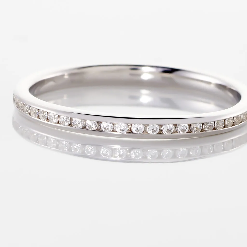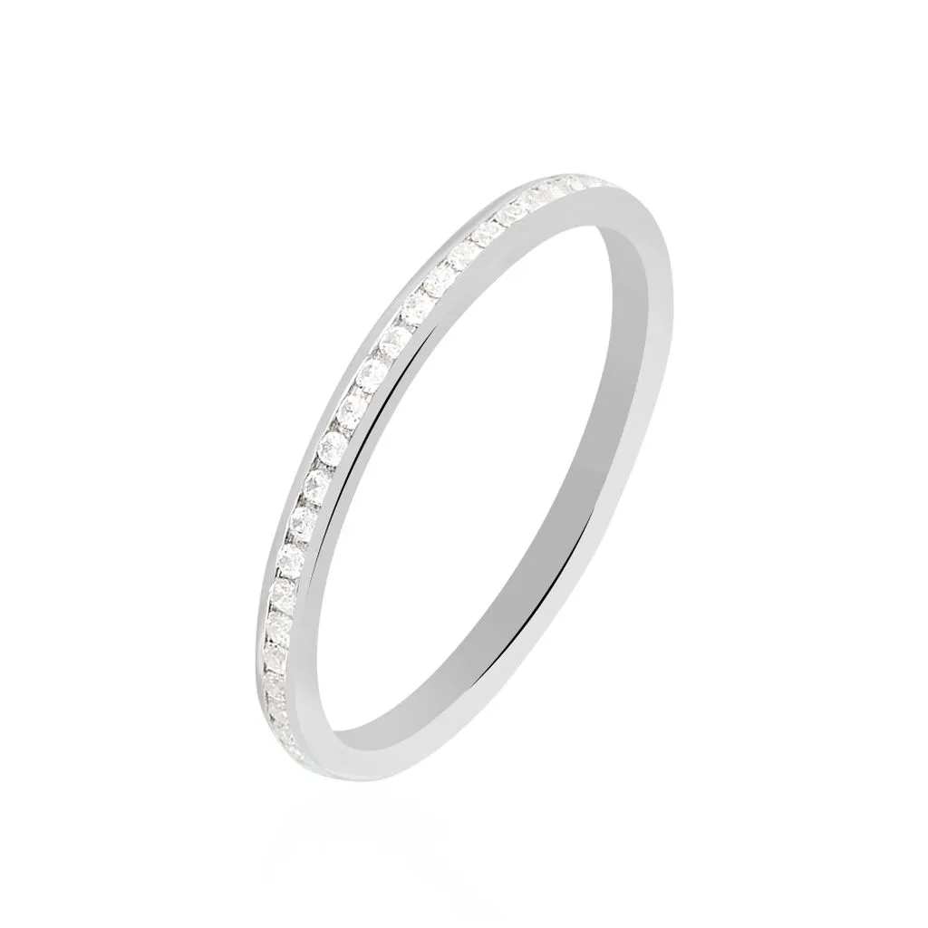 Alliance Or Blanc 375/1000 Tour Complet Diamants Sertis Rail 0.25cts