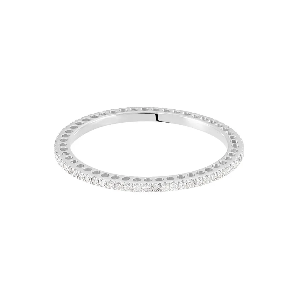 Alliance Or Blanc 375/1000 Diamants 0.195cts Tour Complet Micro Setting