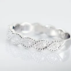 Alliance Or Blanc 375/1000 Perlée Et Diamantée 3mm