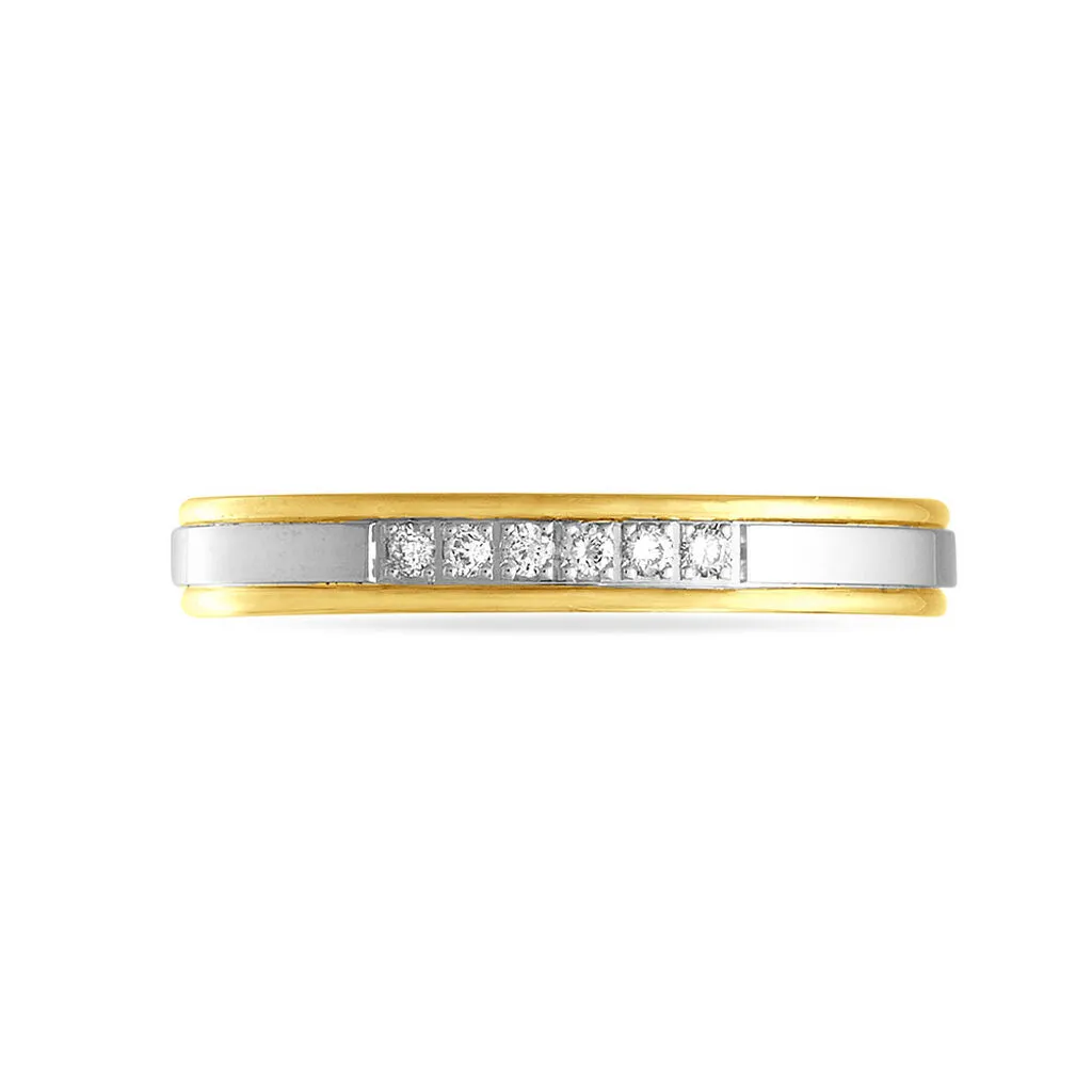 Alliance Or Bicolore 750/1000 Blanc Et Jaune 6 Diamants Sertis Grain 3mm