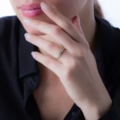 Cette jolie bague vous conquerra par la délicatesse de son anneau en or jaune. 19 diamants blancs sont disposés harmonieusement sur le corps de bague pour accentuer son éclat. C’est un ravissant modèle qui complète tous les looks féminins. Il complétera votre tenue tout en apportant une touche de raffinement.