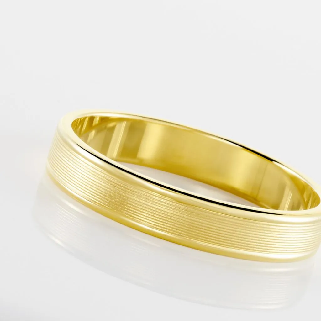 Alliance Or Jaune 750/1000 Fantaisie Mat Et Liseres Brillants 4mm