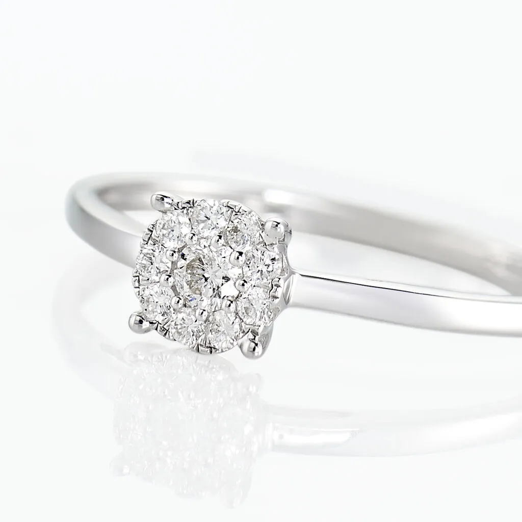 Bague Or Blanc 375/1000 Multipierres Diamants 0.15cts
