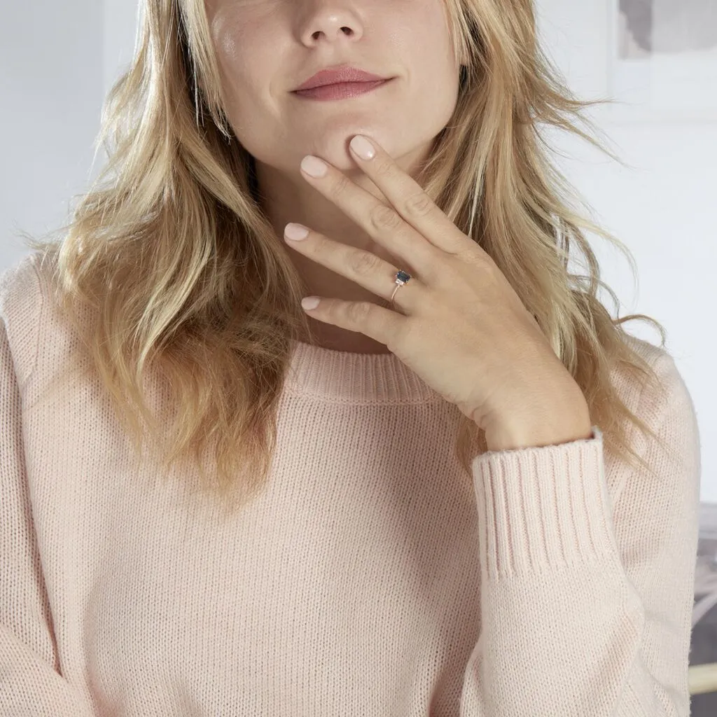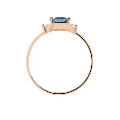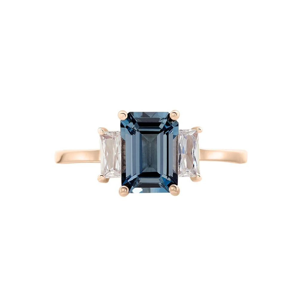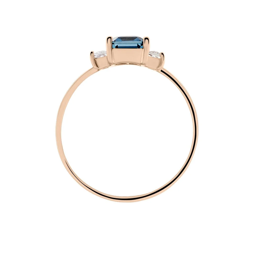 Bague Or Rose 375/1000 Topaze London Blue Taille Emeraude Oxydes De Zirconium Baguettes