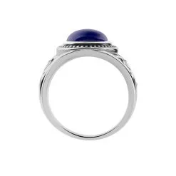 Bague Argent Blanc 925/1000 Effet Vieilli Lapis Ovale Bleu