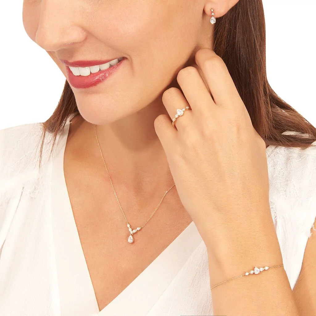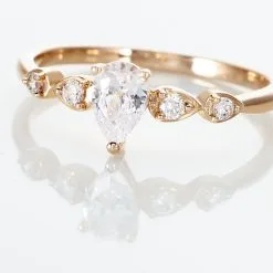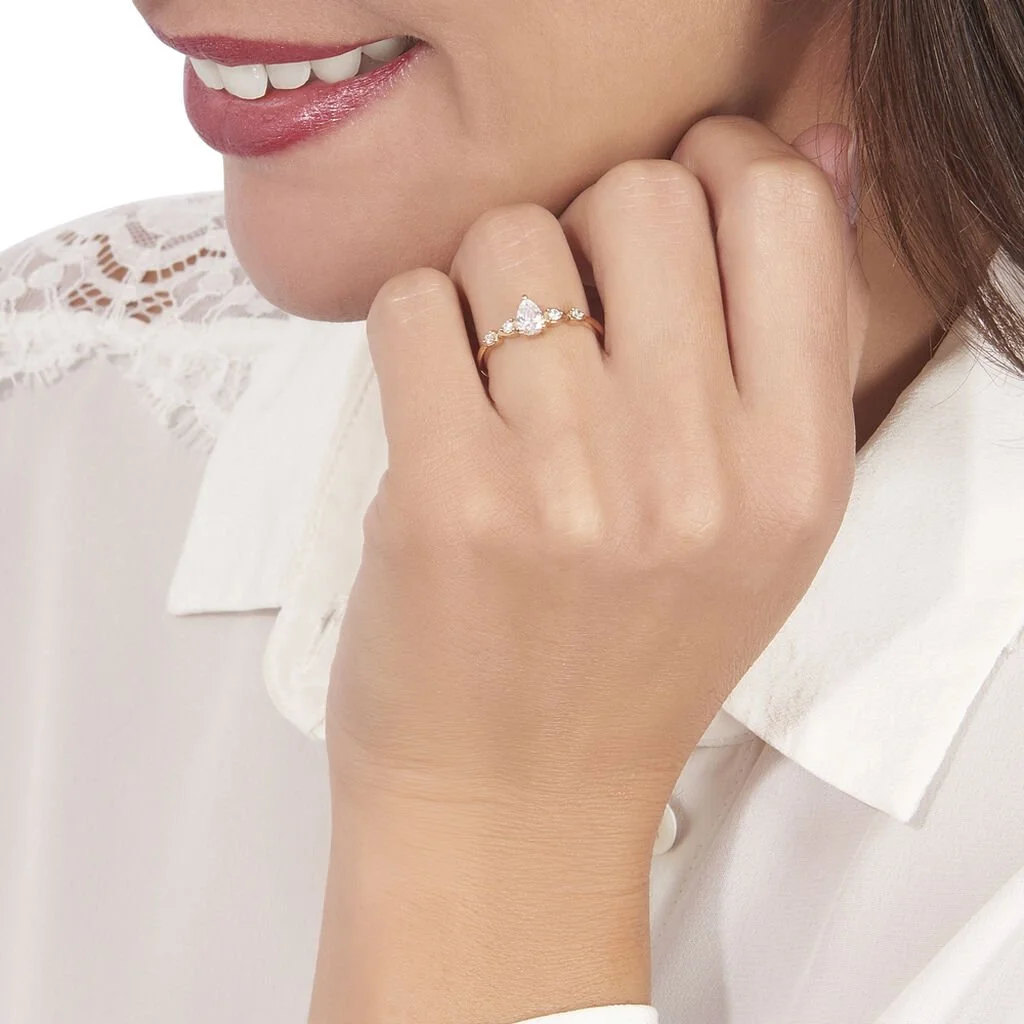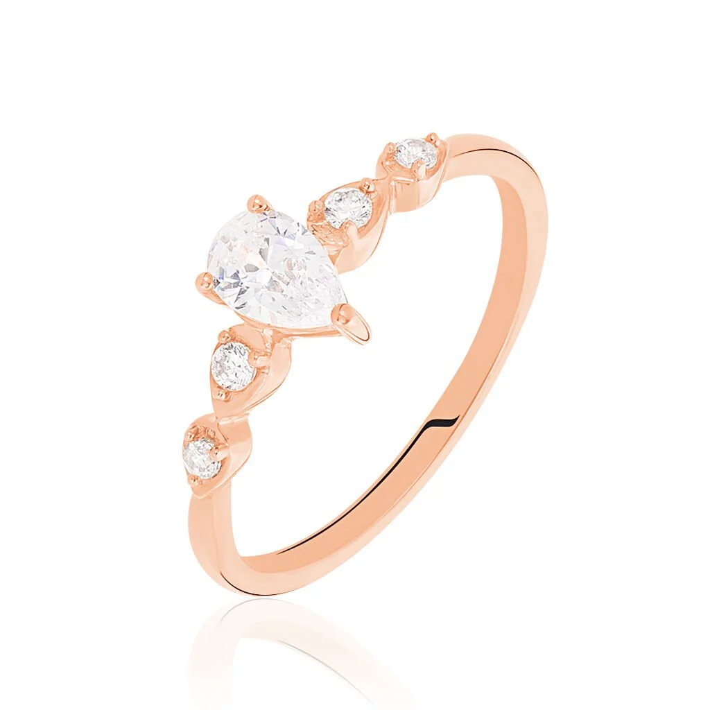 Bague Or Rose 375/1000 Oxyde De Zirconium Forme Poire Accompagne Oxydes De Zirconium