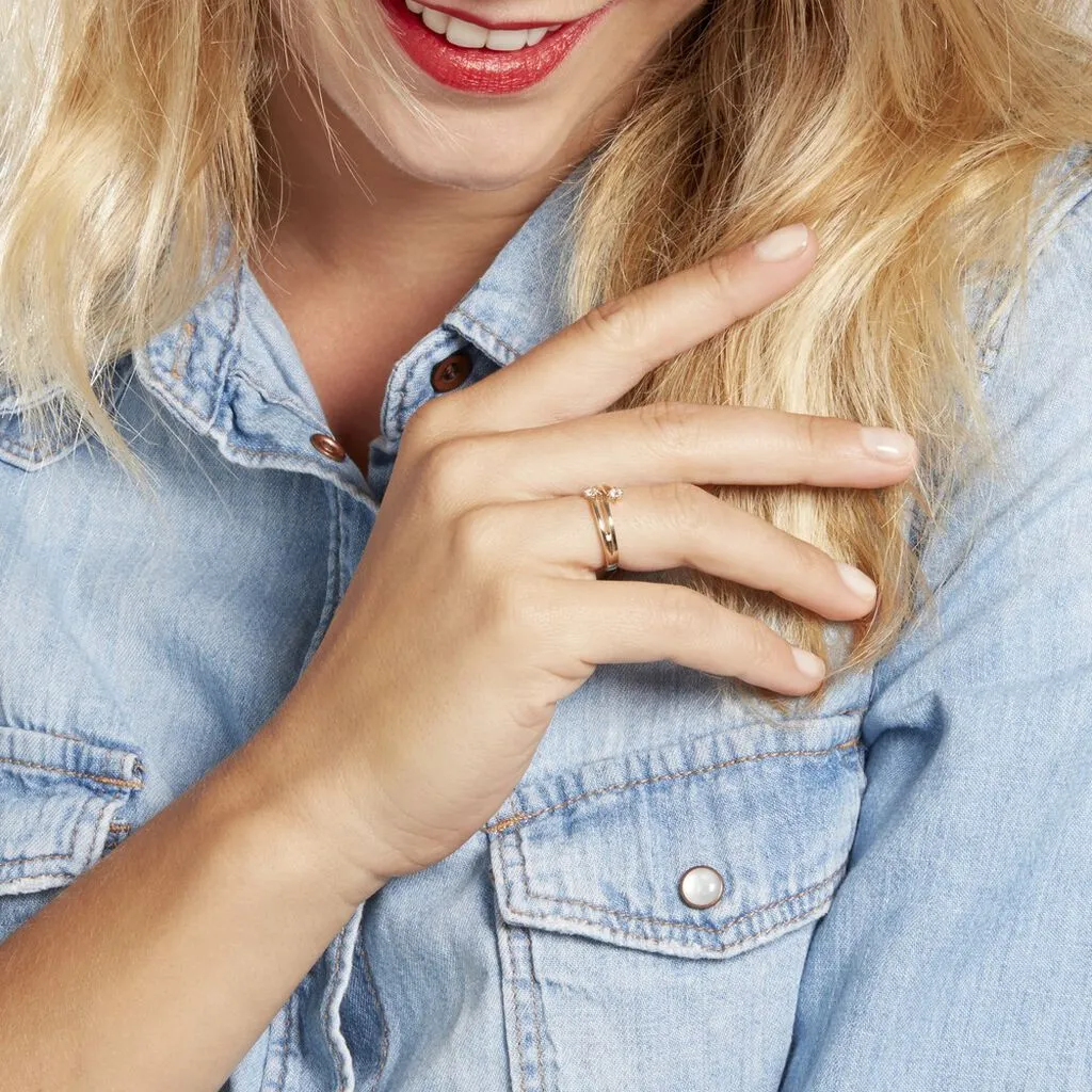Stylée et originale, cette ravissante bague séduit au premier coup d’œil. Elle se porte avec tous les looks pour ajouter une petite touche de fantaisie. 2 oxydes de zirconium blancs sertis griffes viennent ajouter un subtil éclat à cette jolie bague en plaqué or.