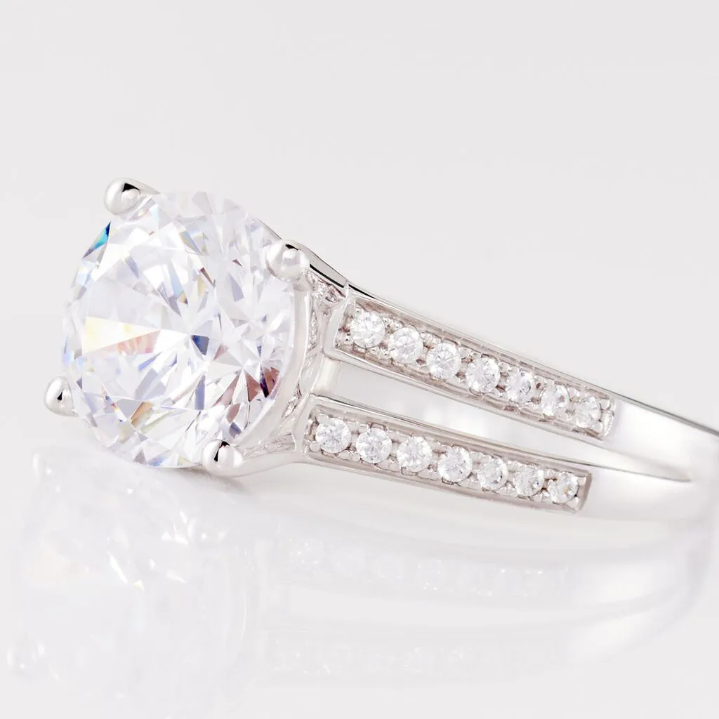 Solitaire Or Blanc 375/1000 Oxyde De Zirconium Central Accompagne Pavage Oxydes De Zirconium Double Rang Ajoure