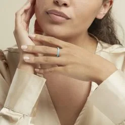 Bague Argent Blanc 925/1000 Anneau Email Bleu