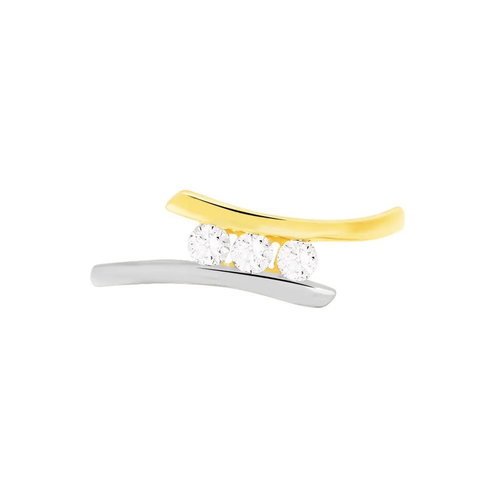 Bague Or Jaune 375/1000 Et Rhodie Blanc Trilogie Oxydes De Zirconium Sophie