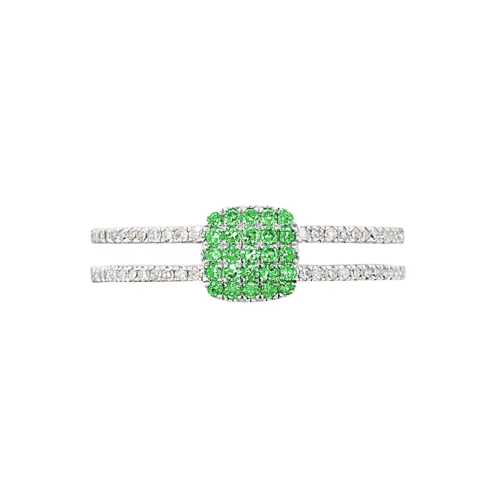 Bague Or Blanc 375/1000 Coussin Grenats Verts