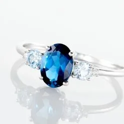 Bague Accompagnée Or Blanc 375/1000 Topaze London Blue 0.86cts Serti Griffes
