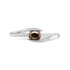 Bague Or Blanc 375/1000 Quartz Fume Oval Serti Couteau