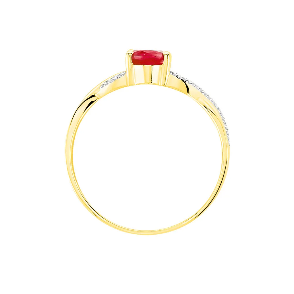 Bague Or Jaune 375/1000 Croisee Rubis Oval Serti Griffes