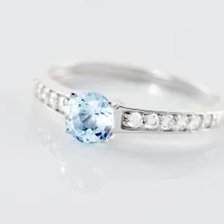 Bague Solitaire Accompagné Oxydes Or Blanc 375/1000 Topaze 0.5cts Serti Griffes