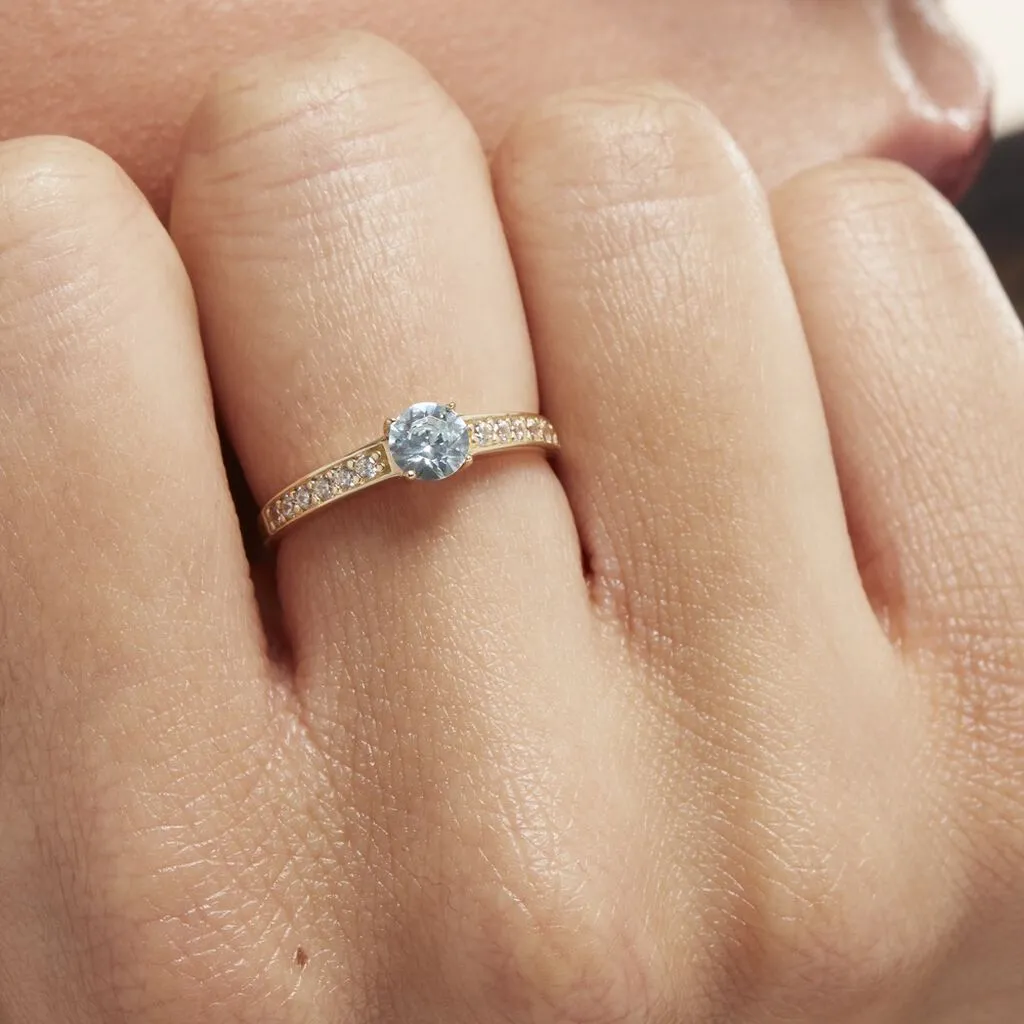 Bague Solitaire Accompagné Oxydes Or Jaune 375/1000 Topaze 0.5cts Serti Griffes