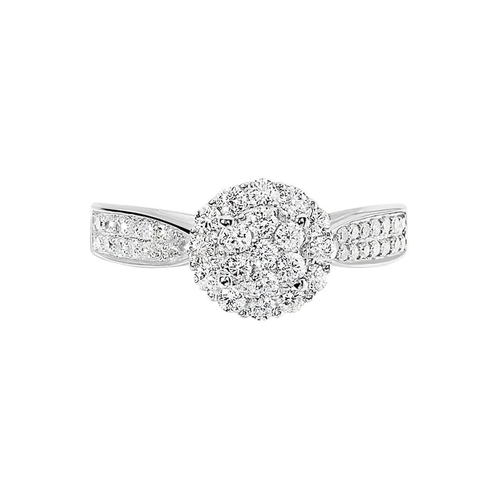 Bague Or Blanc 375/1000 Diamant Central Effet Chou Entourage Diamants Corps De Bague Accompagne Diamants 0.568cts