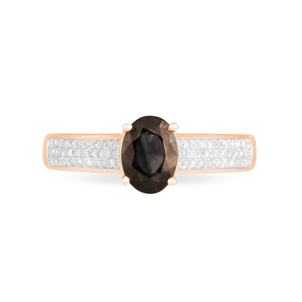 Bague Or Rose 750/1000 Quartz Fume Ovale Accompagne Diamants Gm