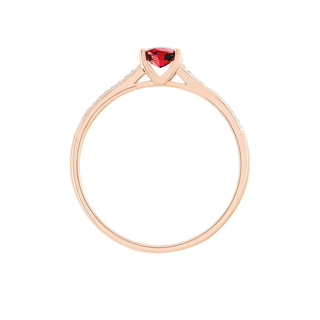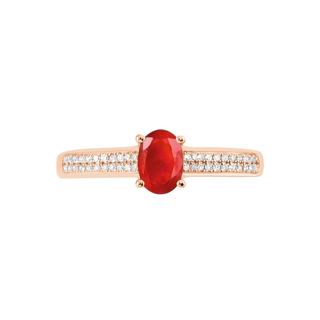 Bague Or Rose 375/1000 Rubis Oval Accompagne Diamants Pm