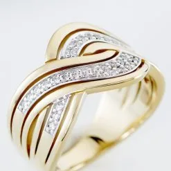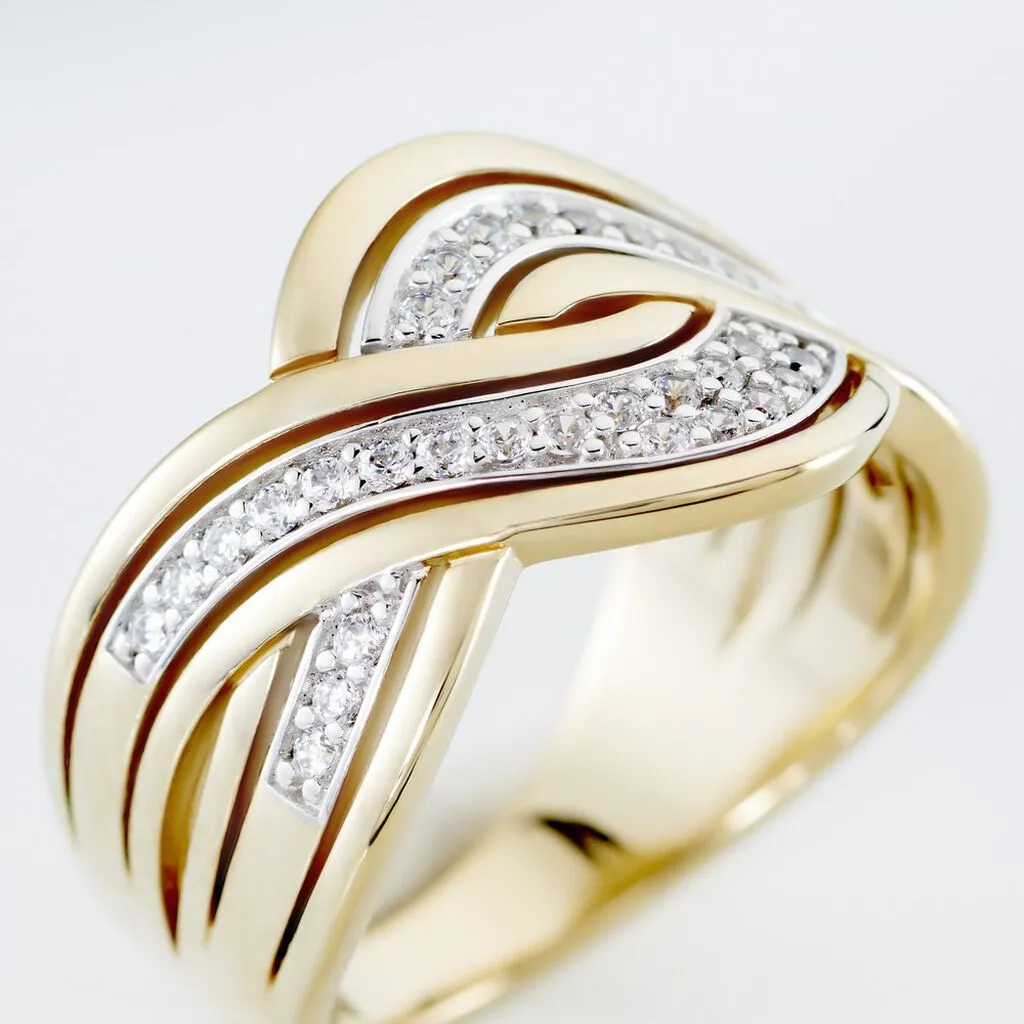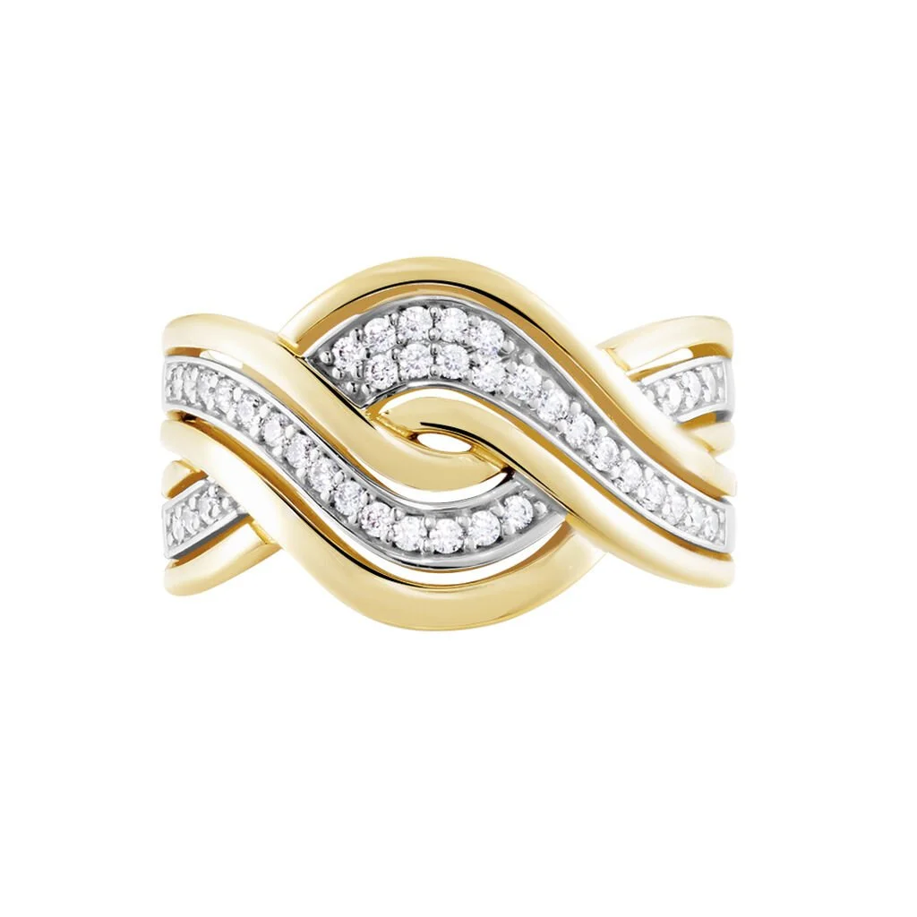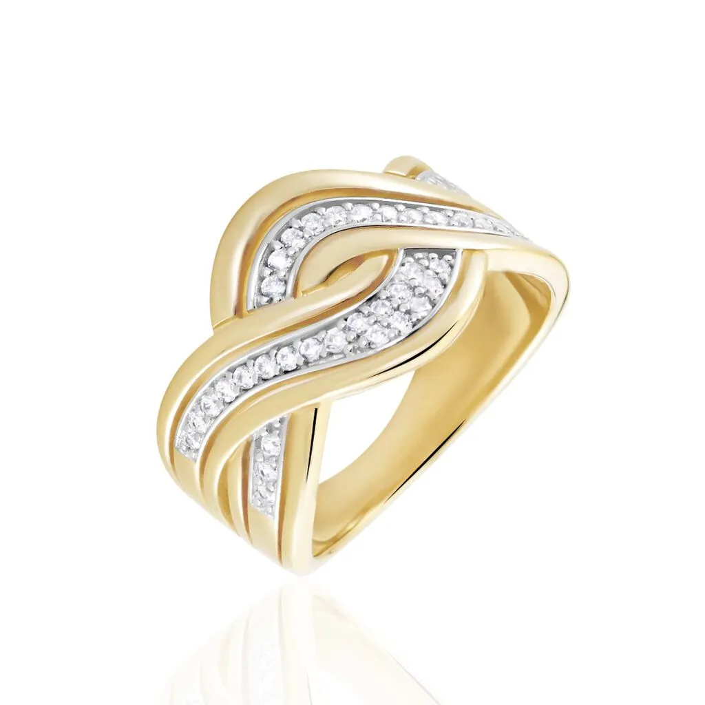 Bague Plaqué Or Jaune Vagues Entrelacées Pavage Oxydes De Zirconium