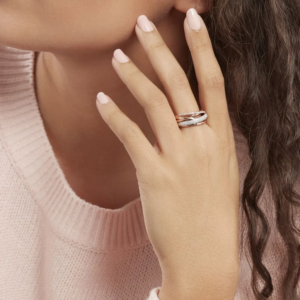 Bague Or Rose 375/1000 Brides Croisees Et Pavages Diamants