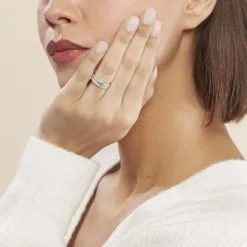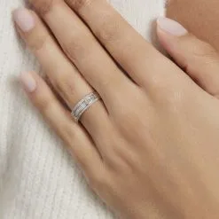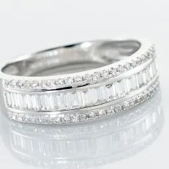 Bague Or Blanc 750/1000 Pm Diamants Baguettes 0.46cts Et Ronds